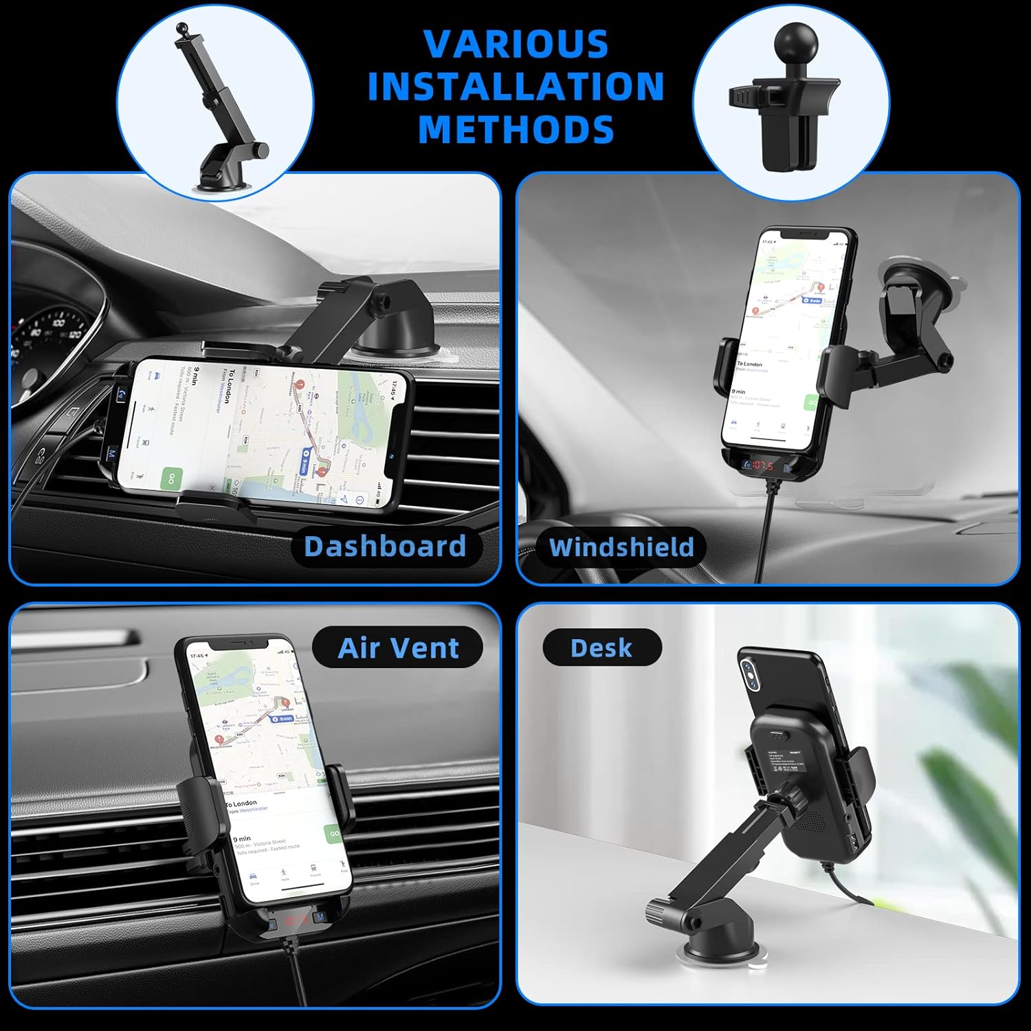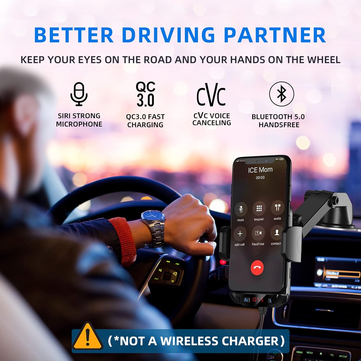 Bluetooth 5.3 FM Transmitter Car Adapter Magift FM Transmitter Bluetooth for Car Phone Holder with Dual USB Charging Car Charger MP3 Player Support TF Card USB Disk Compatible for All Smart Phone