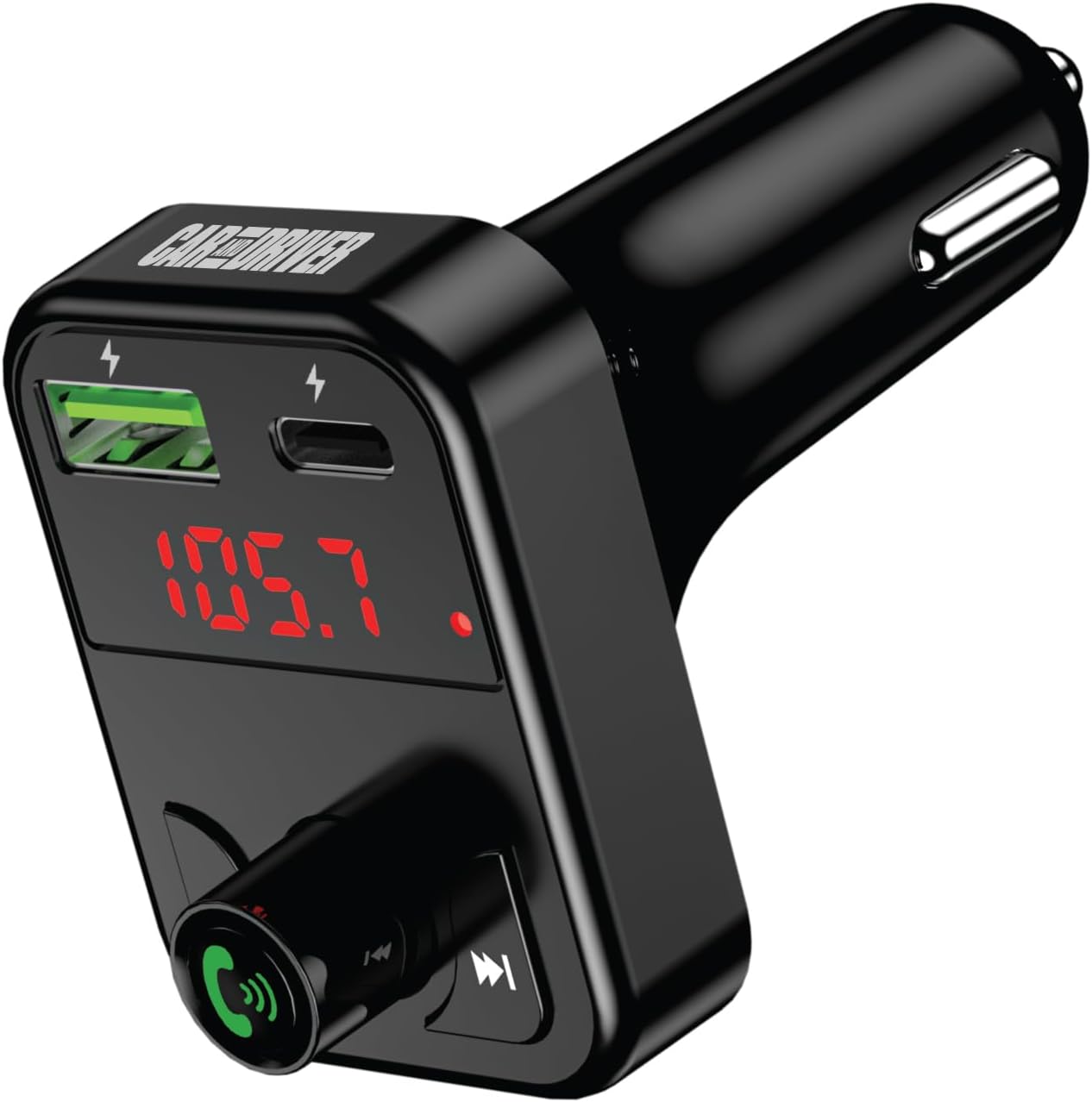 Car and Driver Wireless FM Transmitter | Hands-Free Calling, Built-in Mic | Dual USB 4.8A Charging Power | Stream Music & Phone from Car Stereo via Bluetooth 5.3 | Plugs into 12V Lighter Socket